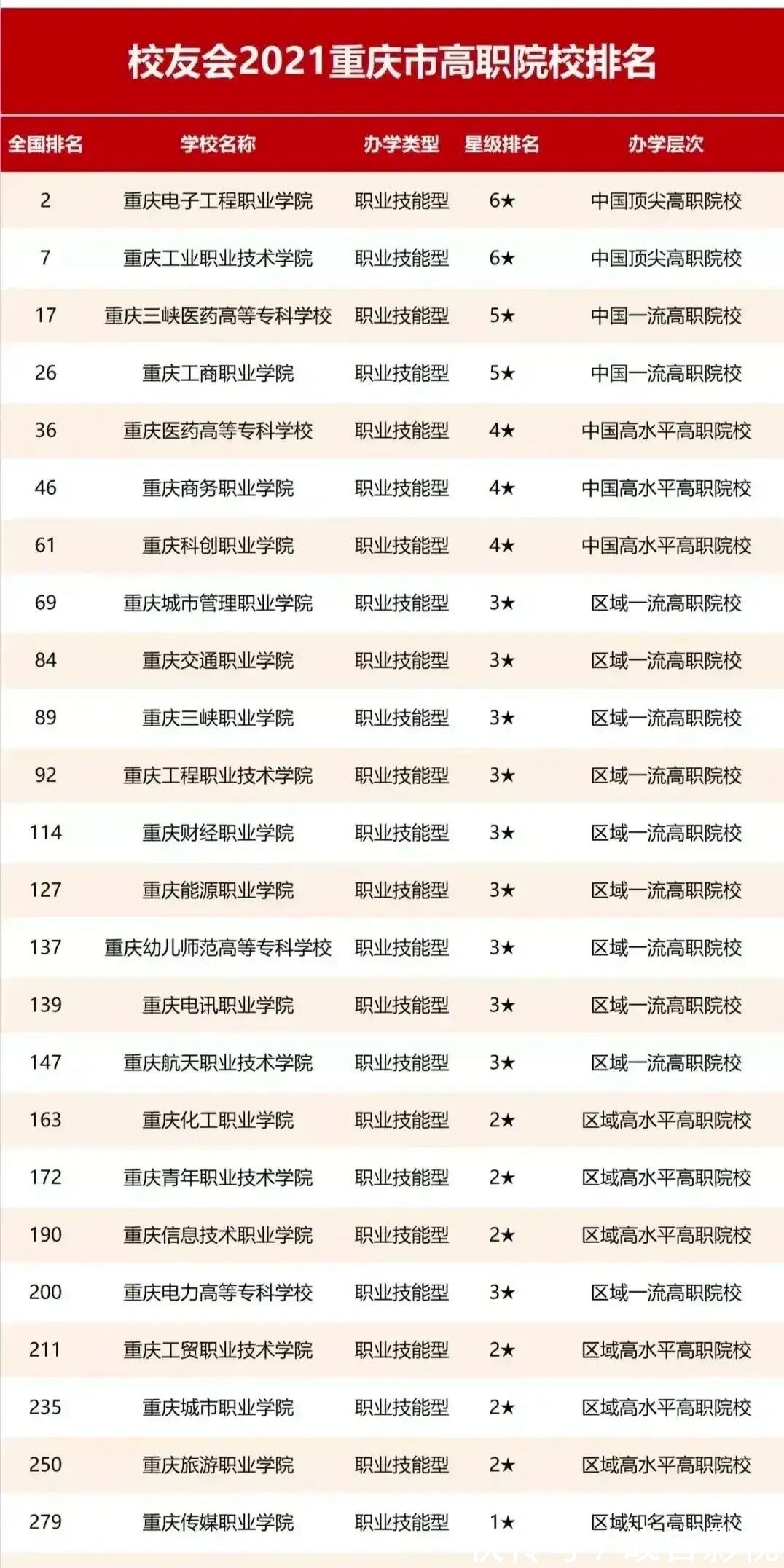 摘要:重庆一共有29所高职院校,有两所排进全国前10名,分别是重庆电子工程职业学院第二,重庆工业职业技术学院第七,重庆的高职院校实力还挺强。 重庆工商职业学院全国排第26名,于